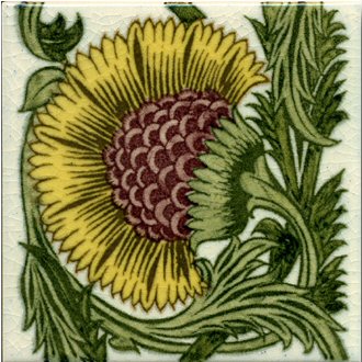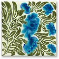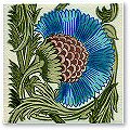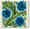 - 8mm thick. De Morgan designed the daisy in 1875. The design combine brushed under glaze line work with deep rich turquoise flowers, which give a each tile true individuality. This tile can be used as a repeating fireplace tile or as an individual piece.