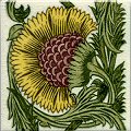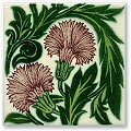- 8mm thick. De Morgan's stylised carnation design is reminiscent of William Morris's flowery designs. This is an example of many variations based on the carnation and can be used as an individual piece or as a fireplace tile.