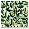 - 8mm thick. The fruit tree design is taken from designs De Morgan created while at Merton Abbey between 1882 and 1887. The repeating floral pattern over two tiles can be used in fireplace panels although each tile is so full of life it is beautiful as an individual piece.