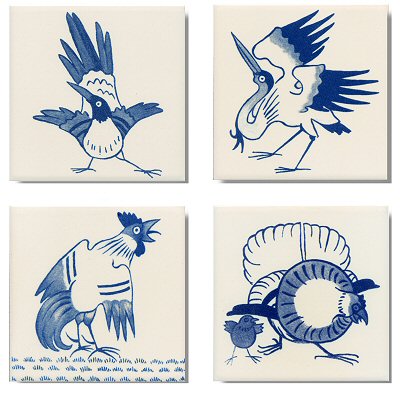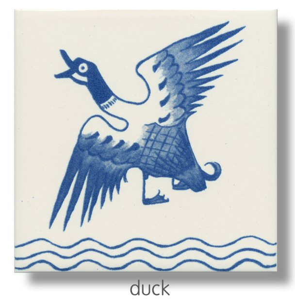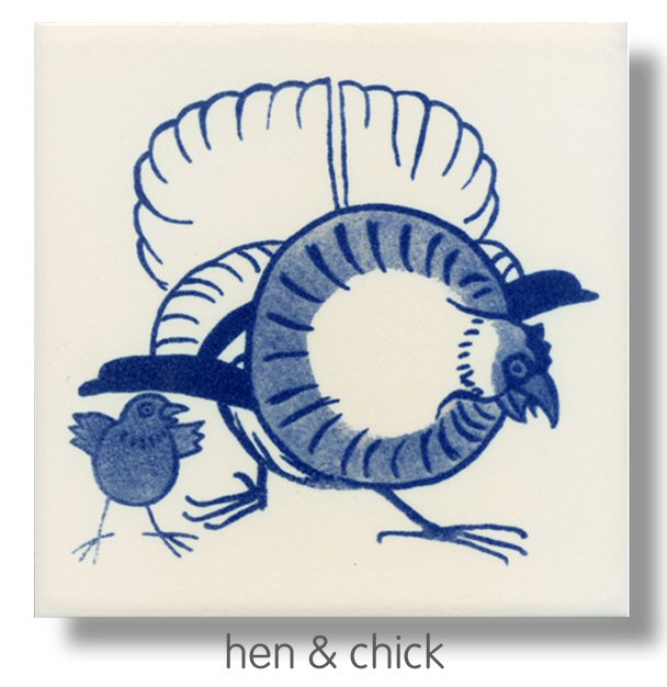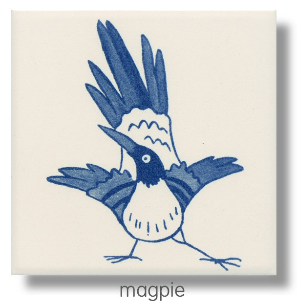 Tiles >> Victorian Reproduction Wall Tiles picturing Magpie, Crane, Cockeral, Hen & Chick, Duck, Goose