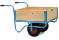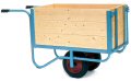 two 40cm pneumatic tyres balancing the barrow in the middle, you