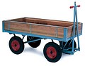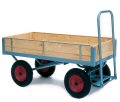 sides, made from wood and steel, with 40cm pneumatic tyres and ball bearing