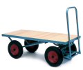 sides, made from wood and steel, with 40cm pneumatic tyres and ball bearing