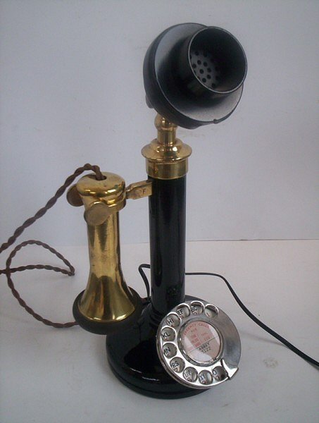 Our range of original Candlestick Telephones have been restored to full working order, and represent excellent value for money. These original metal bodied phones from the late 1920s-1930s belong to 100 Series of British telephones, preceding the 200 and 300 Series phones. These were the first widely-used telephones with a dial. What distinguishes our range of candlestick telephones is their good condition prior to restoration, and the care we take in producing an attractive museum piece that can be used every day for making calls. These phones will work in virtually every country and, in many cases - if you let us know beforehand - we can make sure the telephone is delivered with the correct plug for your telephone network. All telephones have a 12 month guarantee. - Rare, original, GPO bakelite telephones