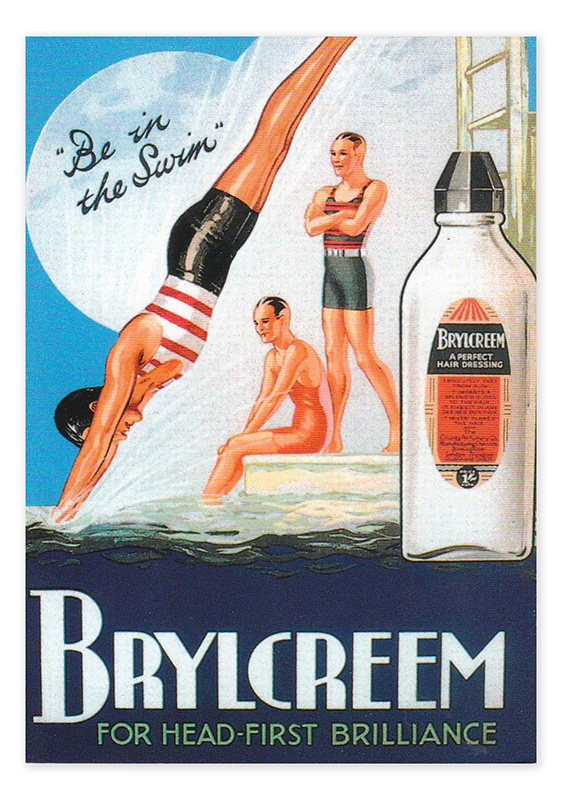 BRYLCREEM SWIMMING POSTCARD - Stock Code: 01BL01. Postcard in the Robert Opie Collection card range. Our nostalgic postcard range now numbers over 300 cards, providing an unparalleled view of British consumer history. That is why they are considered by many to be collector's items. The Robert Opie Collection is the world's largest collection of British advertising images, providing a fascinating insight into the British way of life over the last 130 years.