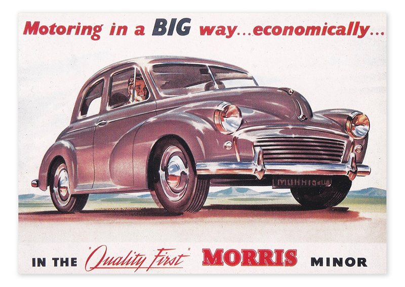 1950s MORRIS MINOR POSTCARD - Stock Code: 01FF26. Postcard in the Robert Opie Collection card range. Our nostalgic postcard range now numbers over 300 cards, providing an unparalleled view of British consumer history. That is why they are considered by many to be collector's items. The Robert Opie Collection is the world's largest collection of British advertising images, providing a fascinating insight into the British way of life over the last 130 years.
