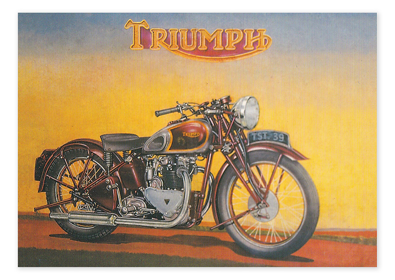 Triumph - Stock Code: 01MB16. Postcard in the Robert Opie Collection card range. Our nostalgic postcard range now numbers over 300 cards, providing an unparalleled view of British consumer history. That is why they are considered by many to be collector's items. The Robert Opie Collection is the world's largest collection of British advertising images, providing a fascinating insight into the British way of life over the last 130 years.