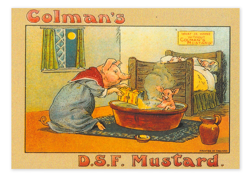 COLMAN'S PIGS POSTCARD - Stock Code: 01PG01. Postcard in the Robert Opie Collection card range. Our nostalgic postcard range now numbers over 300 cards, providing an unparalleled view of British consumer history. That is why they are considered by many to be collector's items. The Robert Opie Collection is the world's largest collection of British advertising images, providing a fascinating insight into the British way of life over the last 130 years.