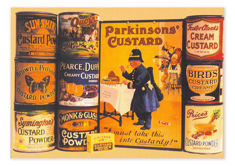 LOTS OF CUSTARD POSTCARD - Stock Code: 01PK01. Postcard in the Robert Opie Collection card range. Our nostalgic postcard range now numbers over 300 cards, providing an unparalleled view of British consumer history. That is why they are considered by many to be collector's items. The Robert Opie Collection is the world's largest collection of British advertising images, providing a fascinating insight into the British way of life over the last 130 years.