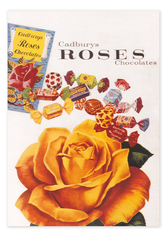 Post Card Roses Chocolates - Stock Code: 01CAD05. Postcard in the Robert Opie Collection card range. Our nostalgic postcard range now numbers over 300 cards, providing an unparalleled view of British consumer history. That is why they are considered by many to be collector's items. The Robert Opie Collection is the world's largest collection of British advertising images, providing a fascinating insight into the British way of life over the last 130 years.