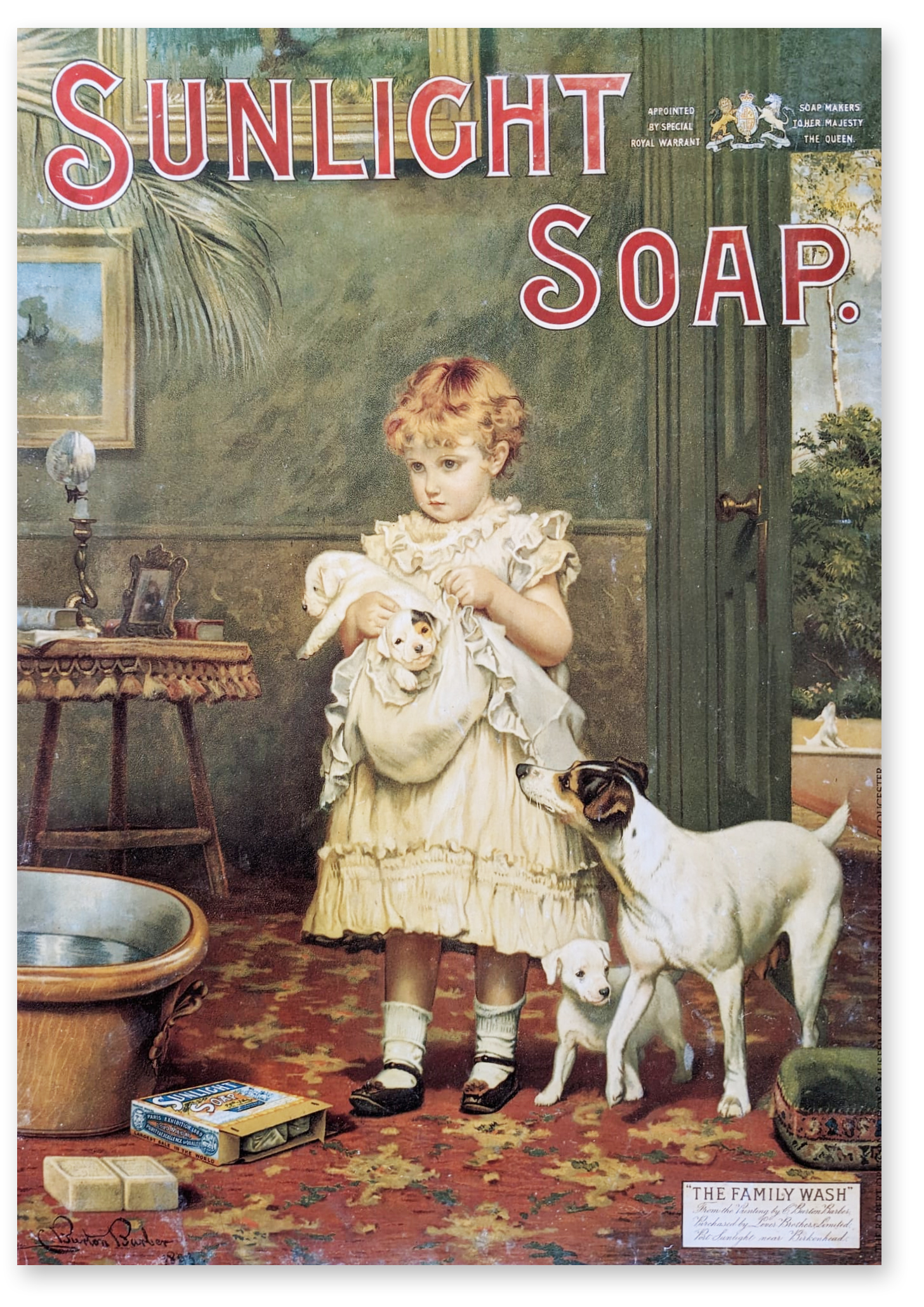 Poster - Sunlight Soap. Code: 13ROPS07. Large A2 size, 420 x 594 mm. Ideal for framing, or fixing to a wall without a frame. - Poster of original image in the Museum Collection