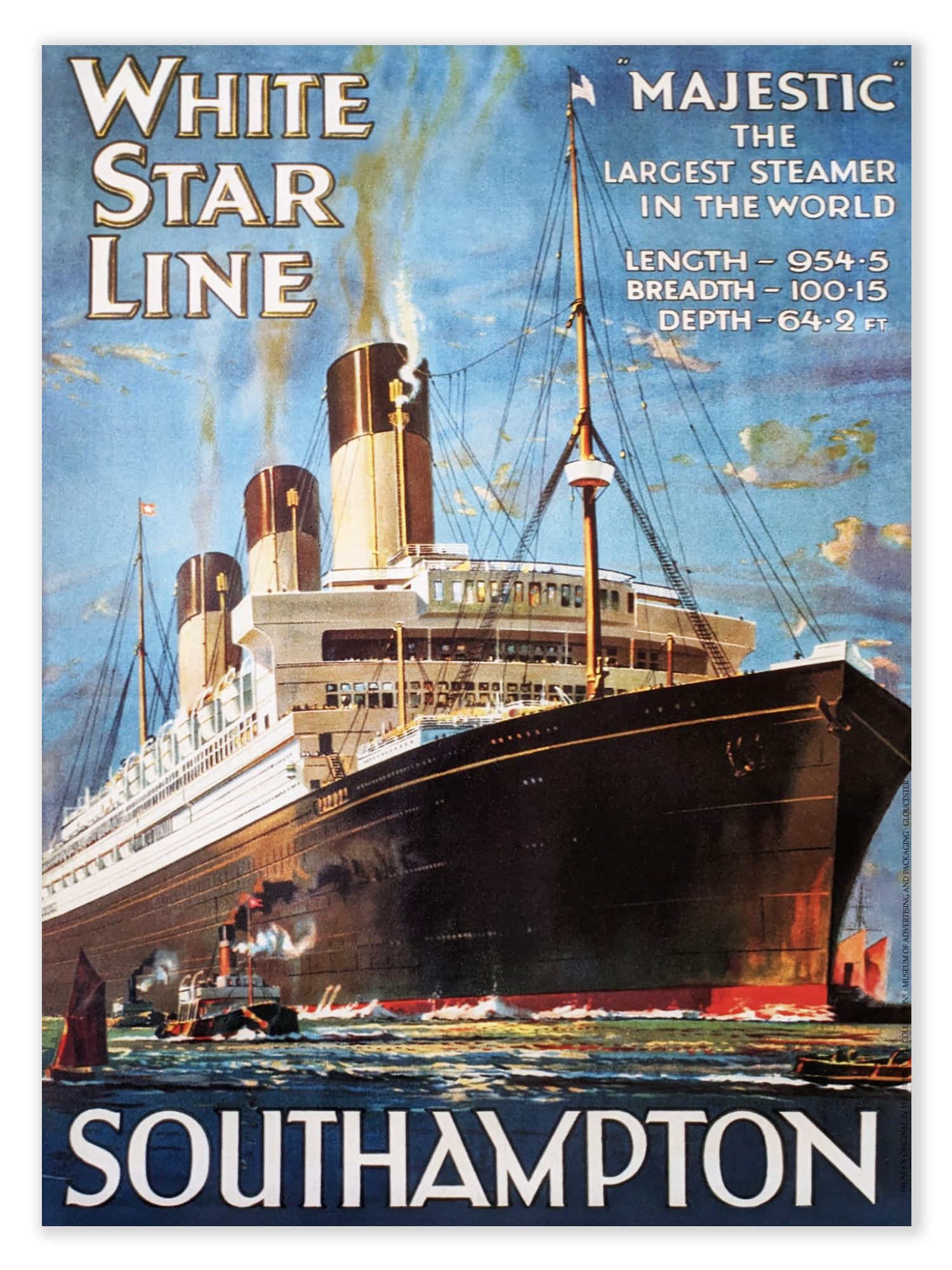 Poster - White Star. Code: 13ROPS42. Large A2 size, 420 x 594 mm. Ideal for framing, or fixing to a wall without a frame. - Poster of original image in the Museum Collection