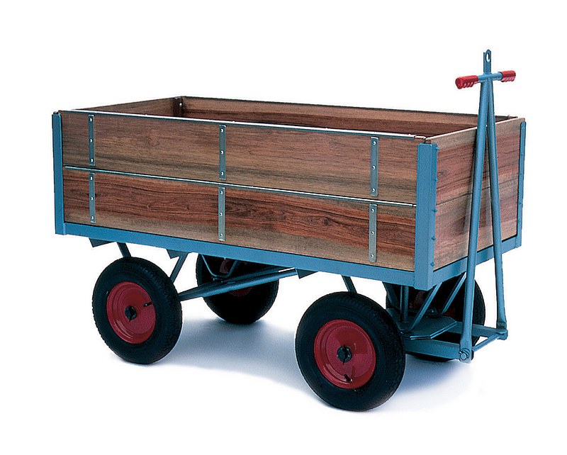 Our Stubbs estate carts with optional tow hitch are strong, but lightweight, and are designed to save you a lot of wasted effort. These carts are called Estate Carts (they are often deployed on large estates and farms), they are also ideal for a whole variety of uses, such as in domestic gardens by members of the public who are looking for something that is a step up from the types of carts that are generally available, and a bit special in terms quality, style and durability. Our heavy-duty estate carts have a large carrying platform. With four 40cm pneumatic tyres you will not need to lift your load (as you do with a barrow), you just pull it. Also, the smooth action rack steering means your cart won't tip over under heavy loads, even when you are turning corners. Our carts are constructed using heavy-gauge steel. They are ideal for shifting pots and planters, hauling logs, paving slabs and soil, or simply for carrying around garden tools and equipment. These are not the only four-wheeled carts available, but they are the best you'll find, and their traditional timeless steel and wooden construction style are a joy to behold - we are very happy to recommend them! - Loads up to 1000 Kg