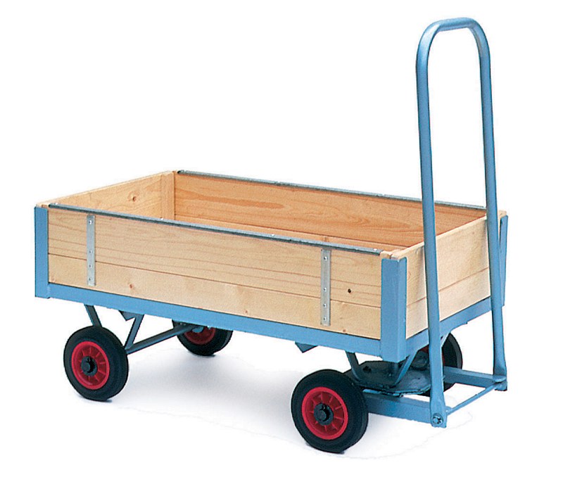 High-quality heavy duty cart with slde-in sides, made from wood and steel, with 30cm pneumatic tyres and ball bearing wheel mounts. Can take loads up to 400 Kg. Overall Size (L)117cm x (W)61cm x (H)51cm. Platform size (L)107cm x (W)61cm x (H)20cm. Weight 50 Kg. Approaching a third century of trolley manufacturing at Progress Works, Stubbs is still family owned. Originating as blacksmiths and agricultural implement manufacturers in 1836, Stubbs is Britains best traditional cart manufacturer. - Moves just about anything!