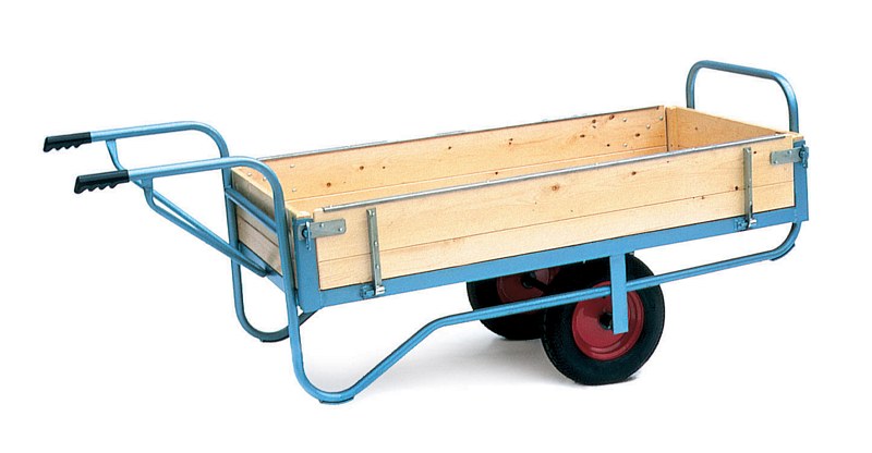 High-quality heavy duty balance trolley cart with hinged sides, made from wood and steel, with 40cm pneumatic tyres and ball bearing wheel mounts. Can take loads up to 500 Kg. Overall Size (L)178cm x (W)69cm x (H)85cm. Body size (L)122cm x (W)69cm x (H)20cm. Deck heights 43cm. Weight 44 Kg. Approaching a third century of trolley manufacturing at Progress Works, Stubbs is still family owned. Originating as blacksmiths and agricultural implement manufacturers in 1836, Stubbs is Britains best traditional cart manufacturer. - Moves clippings, leaves, pots, logs, paving and tools, and