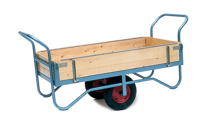 Our Stubbs balance carts are strong, and are designed to save you a lot of wasted effort. Although these our carts shown here are often deployed on large estates, farms & commercial environments, they are also ideal for use in domestic gardens by members of the public who are looking for something that is a step up from the types of carts that are generally available, and a bit special in terms quality, style and durability. Our Stubbs carts have a large carrying volume and are highly maneuverable too. With two 40cm pneumatic tyres balancing the barrow in the middle, you will not need to lift your load (as you do with a non-balanced barrow), you just push (or pull) it. Also, our balance carts are designed not to tip over under heavy loads, even when you are turning corners, which is always a risk with one-wheeled barrows. These carts are constructed in the traditional manner, using heavy-gauge steel and wood. They are ideal for moving clippings, shifting pots and planters, hauling logs, paving slabs and soil, or simply for carrying around garden tools, equipment. These are not the only two-wheeled carts available, but they are probably the best you'll find, and their traditional timeless steel and wooden construction style really are a joy to behold - we are very happy to recommend them! - Loads up to 500 Kg