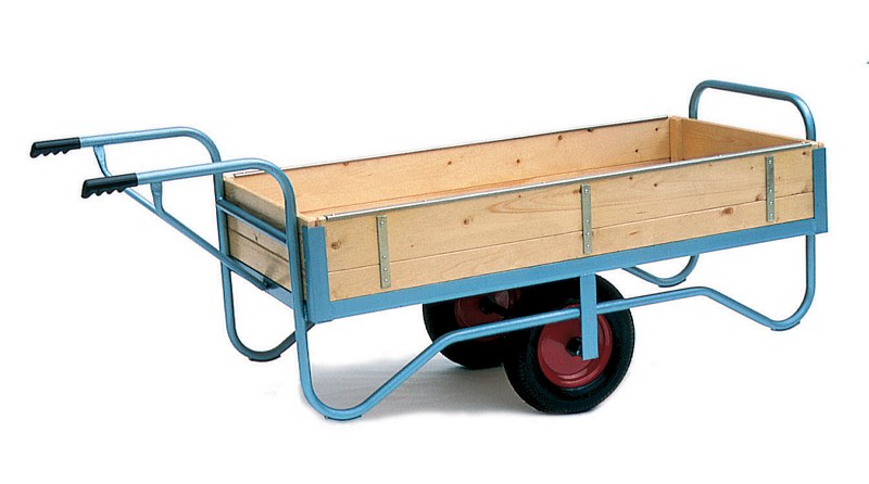Our Stubbs balance carts are strong, and are designed to save you a lot of wasted effort. Although these our carts shown here are often deployed on large estates, farms & commercial environments, they are also ideal for use in domestic gardens by members of the public who are looking for something that is a step up from the types of carts that are generally available, and a bit special in terms quality, style and durability. Our Stubbs carts have a large carrying volume and are highly maneuverable too. With two 40cm pneumatic tyres balancing the barrow in the middle, you will not need to lift your load (as you do with a non-balanced barrow), you just push (or pull) it. Also, our balance carts are designed not to tip over under heavy loads, even when you are turning corners, which is always a risk with one-wheeled barrows. These carts are constructed in the traditional manner, using heavy-gauge steel and wood. They are ideal for moving clippings, shifting pots and planters, hauling logs, paving slabs and soil, or simply for carrying around garden tools, equipment. These are not the only two-wheeled carts available, but they are probably the best you'll find, and their traditional timeless steel and wooden construction style really are a joy to behold - we are very happy to recommend them! - Loads up to 500 Kg