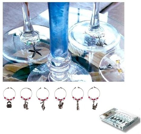 Liven up the conversation at your parties and make sure everyone keeps their own glass. Drink charms are the perfect solution! Handcrafted with genuine Austrian crystal and lead free pewter charms, they adjust to any glass stem or handle. They come in a variety of colors with a large selection of charms so you can be sure everyone you entertain has their own style. They are the perfect gift for the person who has everything and any hostess or host would love to receive them! - Set comprises 6 different wine glass chimes