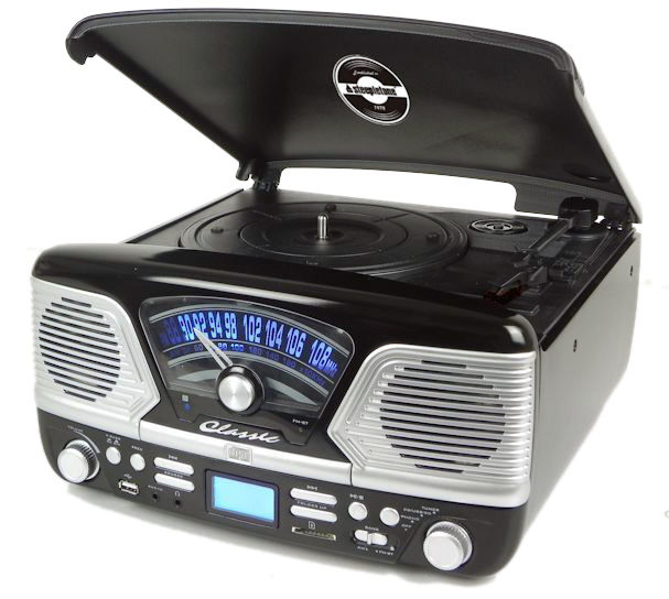 4-IN-1 Music Centre in high-gloss black finish. 4-IN-1 Music Centre in high-gloss cream finish. Records vinyls & CDs with its MP3 recording function. Many of us have family record collections of records, but nowhere to play them. Old record players, if they have been used over many years, can actually damage records, so it is important, if you wish to keep your collection in good order, to use a record player that is both high quality, and in full working order (especially the stylus!). Our Steepletone Roxy 4 CD record player is more than just a good analogue record player. It also includes a fully functional CD player and Radio. What's more it also allows you not only to plug in your MP3 player so you can play your MP3 music through the Roxy's own amplifier and speakers, but also to convert vinyl records and CDs into MP3 format, WITHOUT having to connect the unit to your computer. - Play your old vinyl records: 45s, LPs & 78s