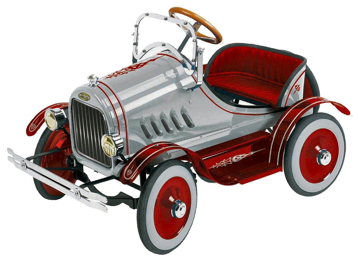 The Model T Roadster pedal car is one of the most popular models in our vintage pedal car range. The original classic colour was blue, but now the range has been extended with the silver and (especially for girls) pink versions. The Model T is a top-end pedal car with many fine features. An all steel body means that it will stand up to years of active play, and the duralast rubber tires ensure a smooth, comfortable ride. This car features a padded seat, rear-mounted spare wheel, a fold-down windscreen and and chrome trim. Finished with a beautiful and tough powder coated body, this car will definitely be a crowd pleaser. Each pedal car is built to a very high standard and guaranteed to become a lasting fond childhood memory. These pedal cars are CE European quality standard approved. Minor assembly is required. Accessories for this car include a personalised number plate. | Size(mm): | 1000(L) x 550(W) x 580(H) | | Weight(kg): | 20 |