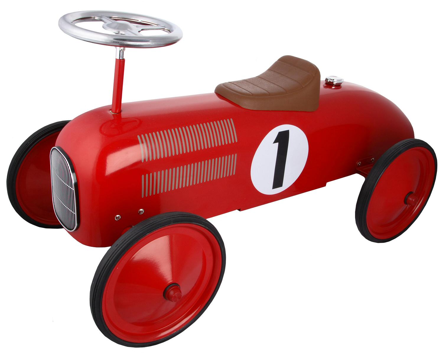 Handbuilt foot-to-floor ride-on car in strong steel, with smooth-running rubber tyres. A beautifully-finished car in red, ideal for the young motoring enthusiast. Suits 1 to 3 years old. - Based on original 1950s designs
